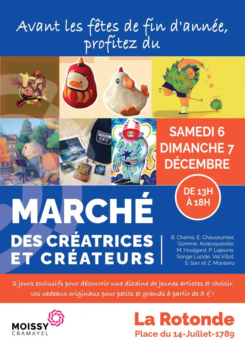 Les 6 et 7 décembre 2025 de 13 heures à 18 heures, votre centre culturel de La Rotonde recevra des artistes à l'occasion d'un marché et d'une vente de créations en tout genre. Venez nombreux pour profiter de ces oeuvres inédites à bas prix !